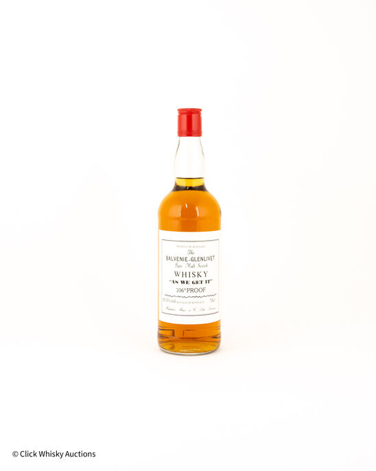 A very rare bottling from the early 1980's of Balvenie, using the older name Balvenie - Glenlivet. This non-age statement expression was released by Inverness based independent botting firm Macfarlane Bruce & Company who were responsible for several bottling's of this type from different distilleries, mostly the Speyside region. The name 'As We Get It' references bottling their expressions at natural Cask strength and colour by the inverness company.