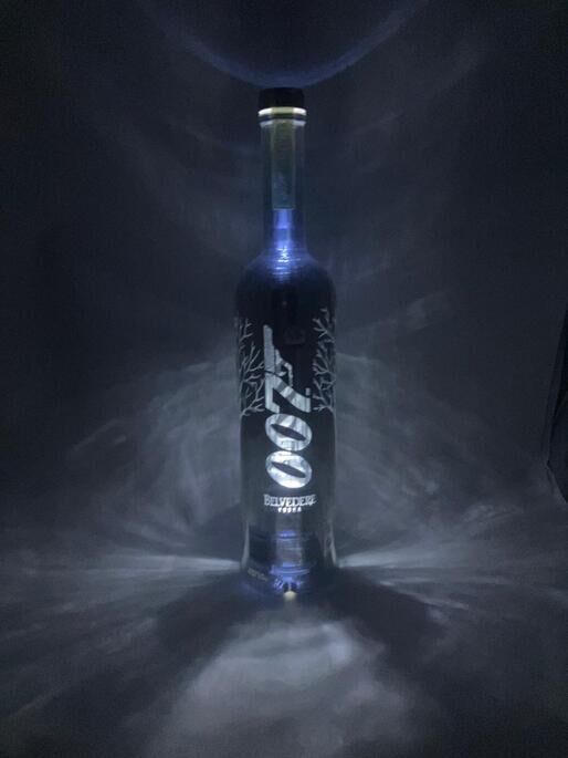 Released in 2014, the iconic Silver Saber Bottle produced by Polish Vodka makers Polmos Żyrardów, is a Collector's Edition magnum that has a polished silver effect and when you click the button on the base of this bottle it actually lights up, illuminating Belvedere Palce on the front and the iconic 007 logo at the rear. Best enjoyed shaken but not stirred!